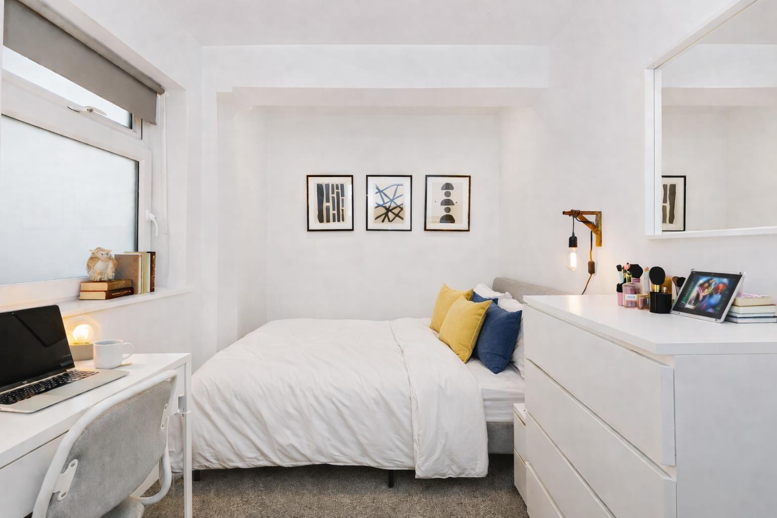 There are six fully furnished double bedrooms, each including a bed, wardrobe, desk, and chair—everything you need for comfortable student living.