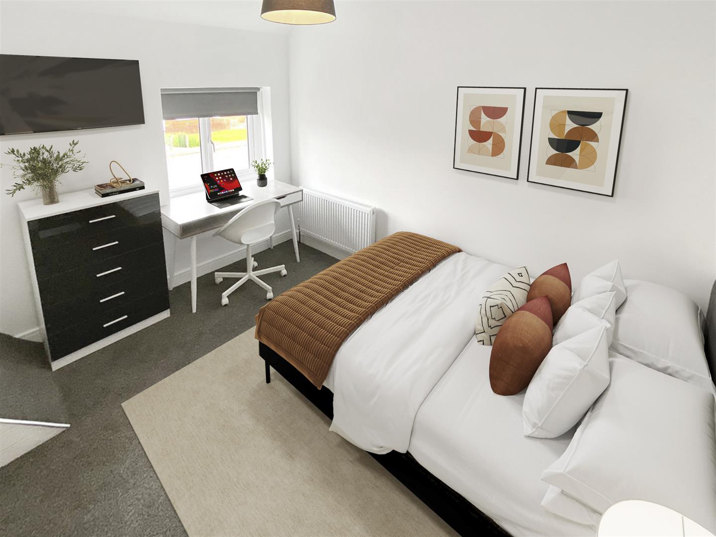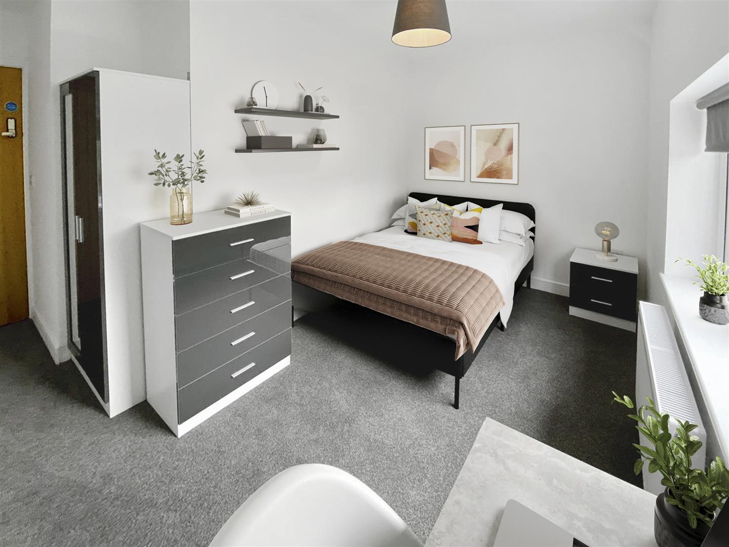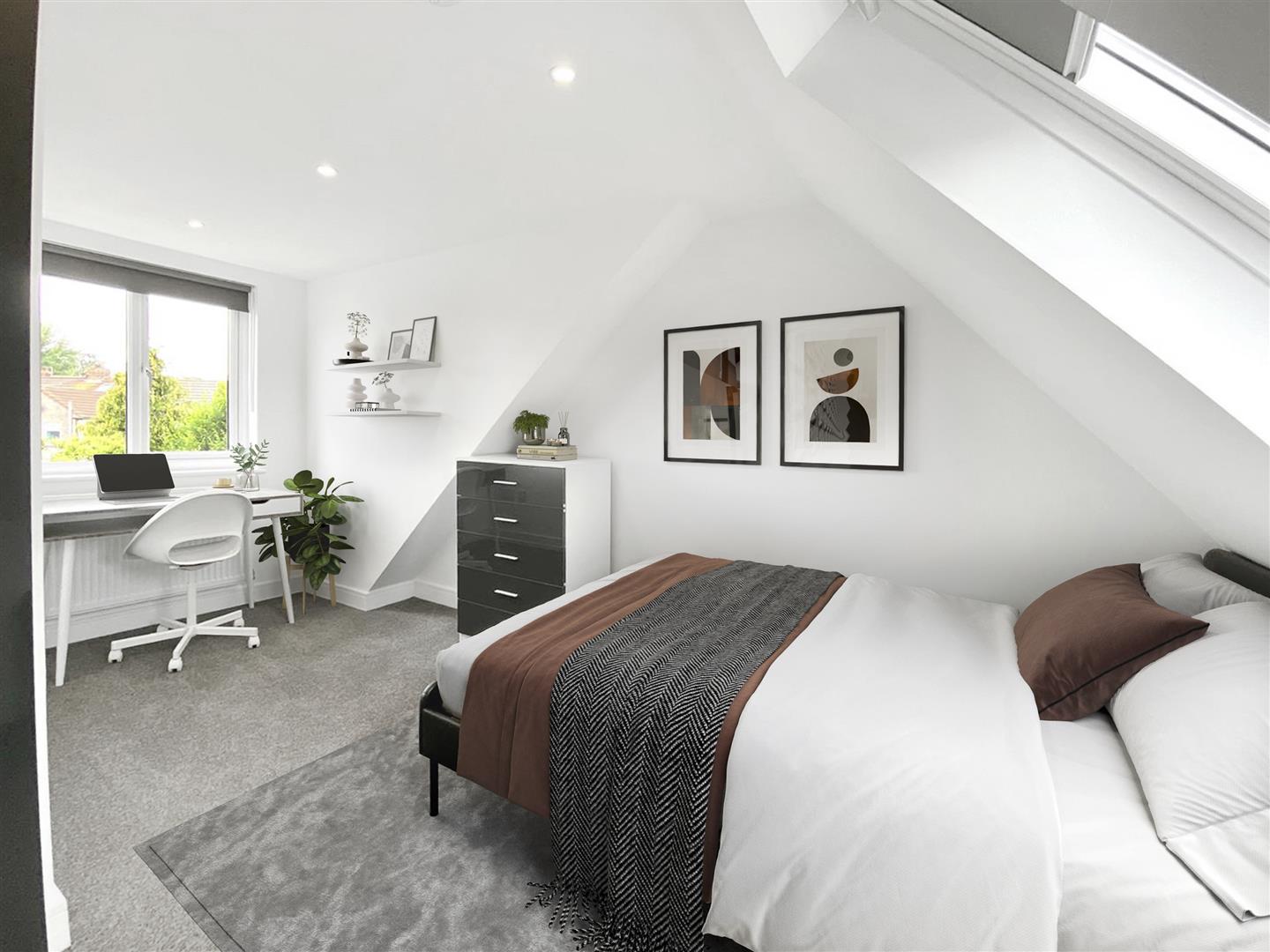 Each bedroom is fully furnished with a double bed and mattress, desk, chair, and clothes storage, providing a comfortable and private study space for every tenant. The property also includes two modern shower rooms and an additional 2 WC's, ensuring plenty of facilities for everyone.
