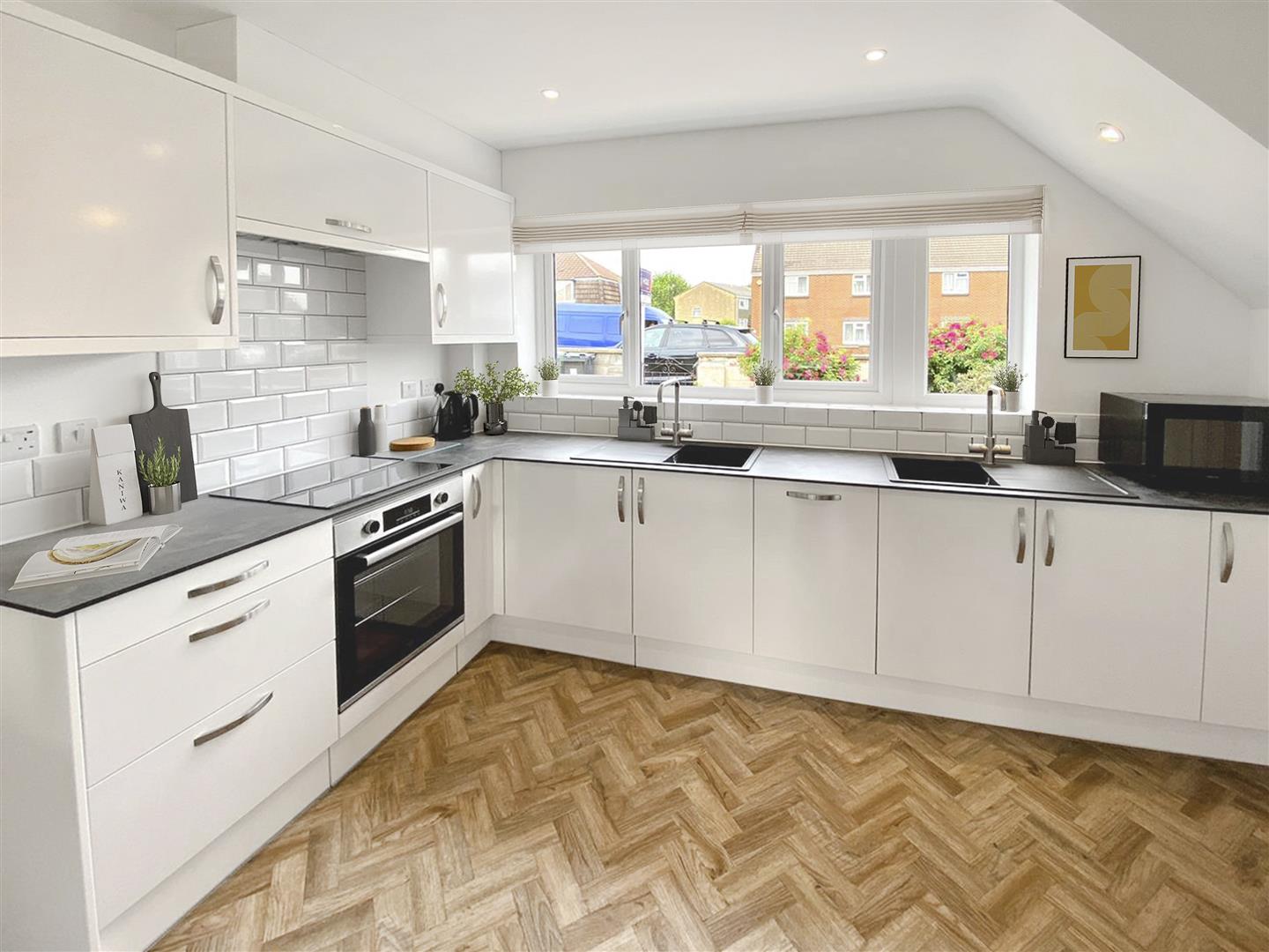 Outside, the low-maintenance garden offers a great outdoor space for all with both a patio area and artificial grass. To the front is a generous driveway providing space for up to three vehicles.