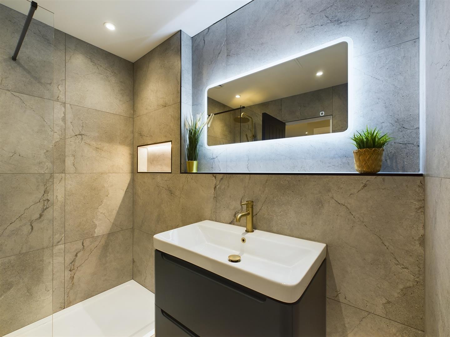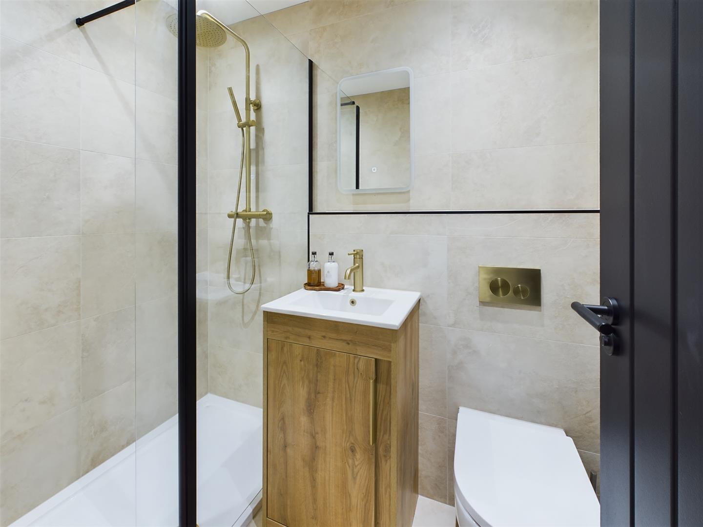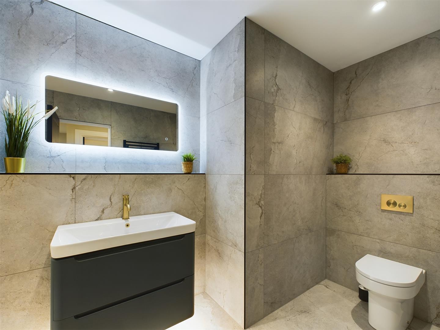 There is a stylish bathroom, fitted with walk-in shower, toilet, and elegant vanity unit, adding a touch of luxury to your daily routine.